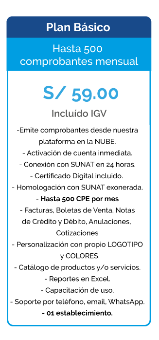 -Costo por usuario o establecimiento adicional: S/ 30.00.